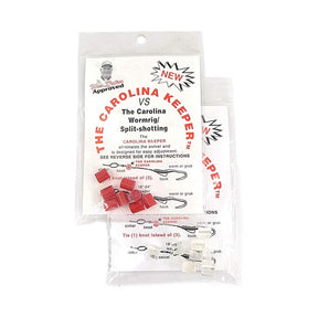 Here’s a fairly new product, replacing split shot for holding your egg sinker above the hook, and finding a lot of others uses as well. Just use your needle nose to squeeze the Carolina Keeper and a slit opens up for you to insert your line. Adjust the Keeper, to the desired distance above your hook and you’re done. The sinker will stay up there were you put it. It’s easy to use, gentle on the line, and effective. (The picture shows a keeper on the line.) Each pack holds several of the Keepers, enough for many day’s fishing, or if you’re lucky even less. Guys fishing bait will find them very useful, better than lead, more secure, darn hard to see, too. But, there are also other uses like rigging dropper loops with less chance of breaking your line, hoochies… You’ll find these very useful little gizmos.