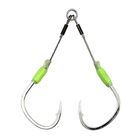 These larger size assist hooks will be great for slow pitch jigging, especially when going for the toothy critters that can saw through kevlar. They feature a traditional thinner hook profile with a wide gap to make it very easy to get a hook set even on a very light action slow pitch jigging rod.