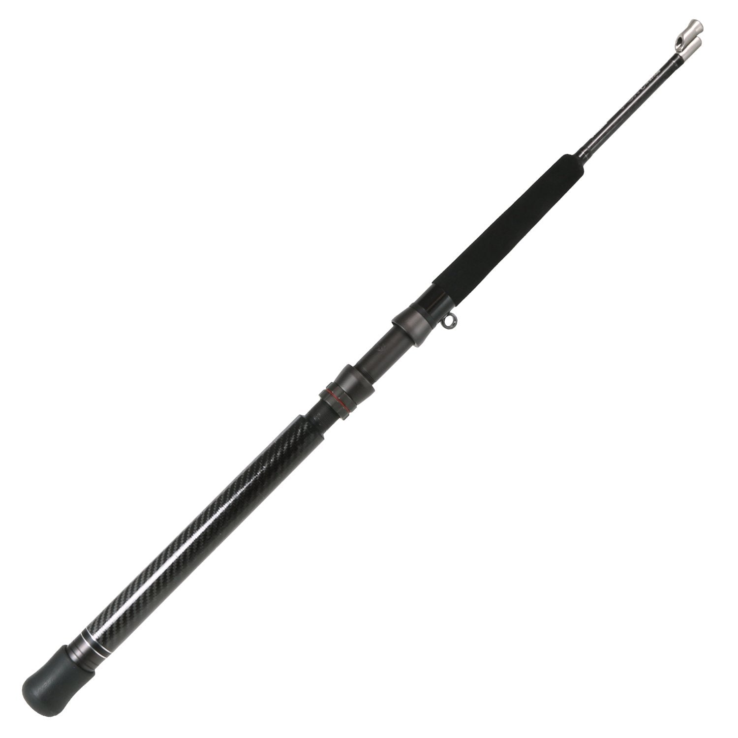 The PCH Custom Kite Rod features a carbon butt section which allows you to easily move the rod from one set of rod holders on one side of your boat to another. The rod also features a unique solid stainless steel tip section with an oversized opening to allow the large, oversized swivels commonly used while kite fishing to be reeled directly onto the reel. It also features a unique ringed clip so that you can leash your rod to your boat to prevent any accidental loss.