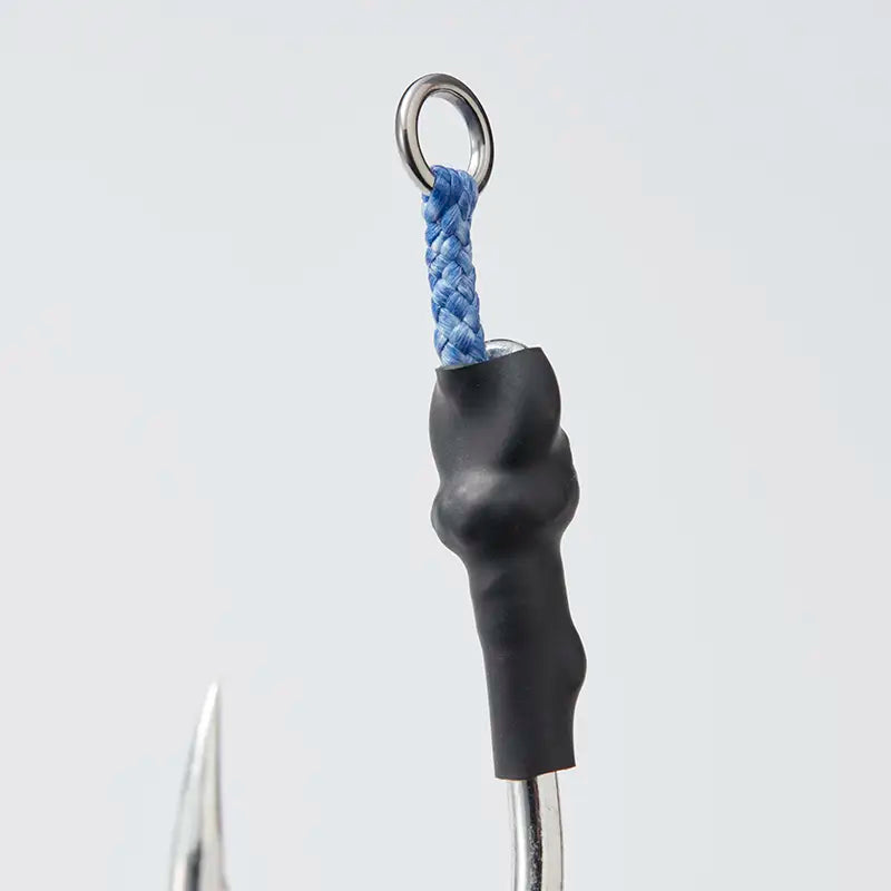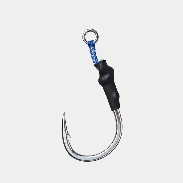 These hooks use a thick gauge forged wire for maximum strength without sacrificing the round point that helps in penetration. While these hooks are designed for topwater plugs they work very well on heavier jig setups for bluefin in California when fishing a rail rod, they are durable and strong enough to last on a 300lb fish making them a great rear or top assist hook for larger jigs. Since these hooks are thick you'll need a stiffer rod to set the hook, something like a rail rod or a heavier speed jigging rod with an aggressive hook set.
