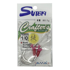 The Crafter hooks are the heaviest version of the Suteki assist hooks, made of thicker wire which gives them a higher weight rating. These are a great hook for night time tuna jigging when using bigger tungsten jigs. If you're targeting bigger tuna and yellowtail using stickbaits and poppers these are also a good option instead of trebles since you can get a more reliable hookset and bigger range of motion which prevents the fish from gaining leverage.
