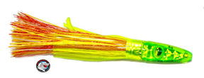 Zuker’s Grass Skirts may not look like all that much, but they act differently. The lure’s body is filled with a coarse nylon material instead of the more traditional feathers. My first reaction to the lure was pure apathy. Frankly, it’s not a very attractive bait. That’s why I didn’t bring it into our stock initially when I first started CharkBait. Boy was I wrong. I began getting a lot of feedback from some of our Northern California clients about it’s effectiveness. So I reluctantly brought them in. Southern California tuna fishermen who followed the internet heard of their success up the coast, tried ’em, and quickly started boiling on these lures like a bunch of tuna feeding on a bait ball. The green/yellow pattern became a much favored “afternoon” go-to lure.